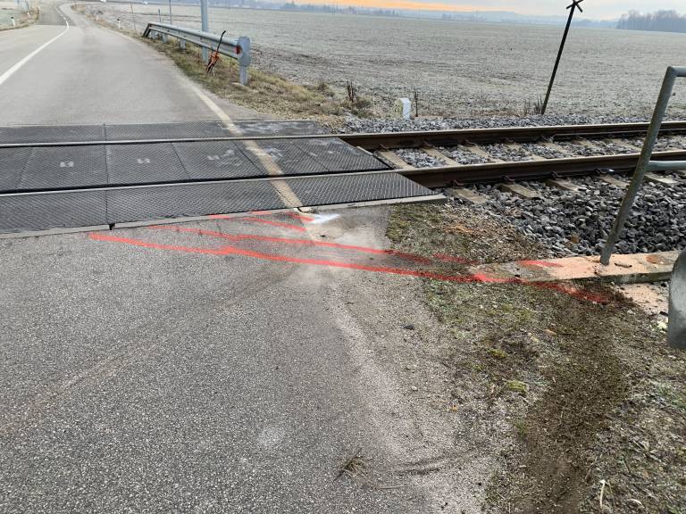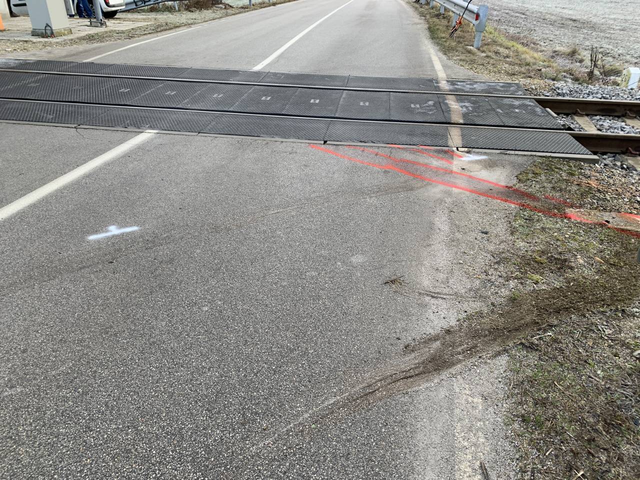 Voznica je kljub zaviranju zaradi spolzkega vozišča s sprednjim delom vozila zapeljala na tirnice, kjer je v vozilo trčil vlak. V nesreči ni bil nihče telesno poškodovan.