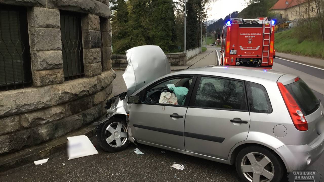 O prometni nesreči, v kateri je osebno vozilo čelno trčilo v zid, so bili mariborski poklicni gasilci obveščeni ob 17.09, poroča uprava za zaščito in reševanje. V prometni nesreči sta dve osebi utrpeli poškodbe.