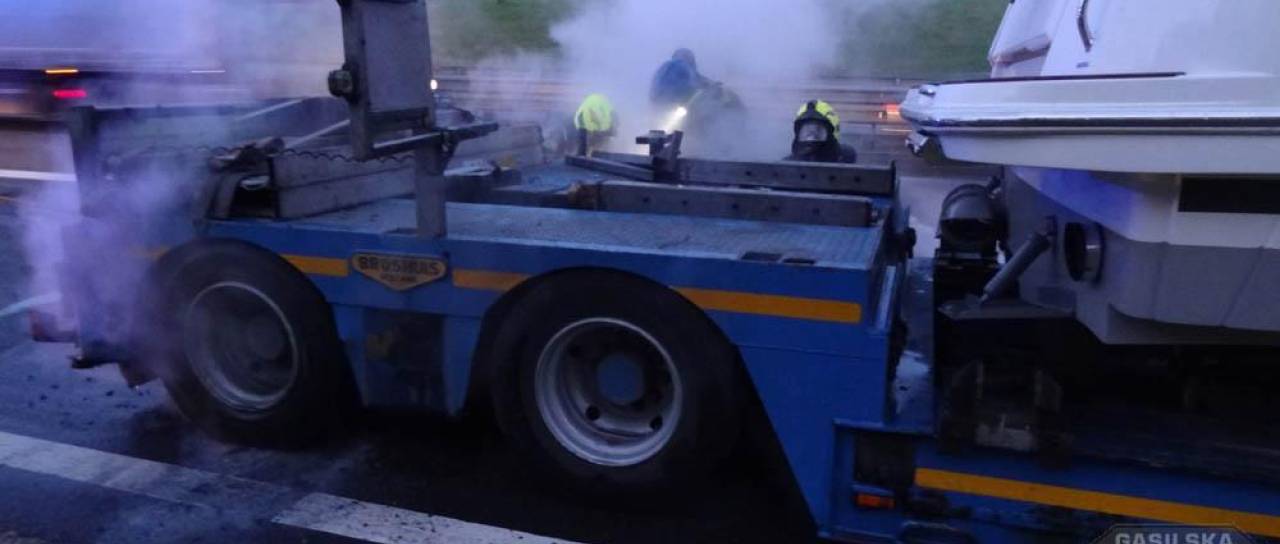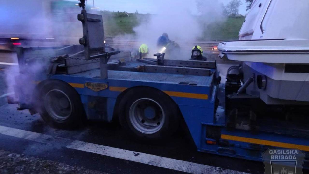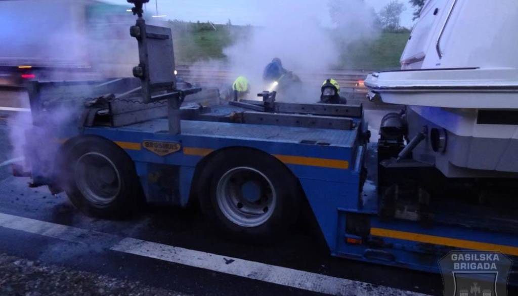 Sinoči, ob 20.39, so gasilci Gasilske brigade Maribor posredovali na avtocesti v bližini naselja Slivnica v občini Hoče - Slivnica, kjer je zagorel priklopnik tovornega vozila za izredni prevoz tovora. Na priklopnem vozilu je prevažalo jahto. Gasilci so zavarovali kraj dogodka, požar pogasili in vozilo pregledali s termovizijsko kamero.