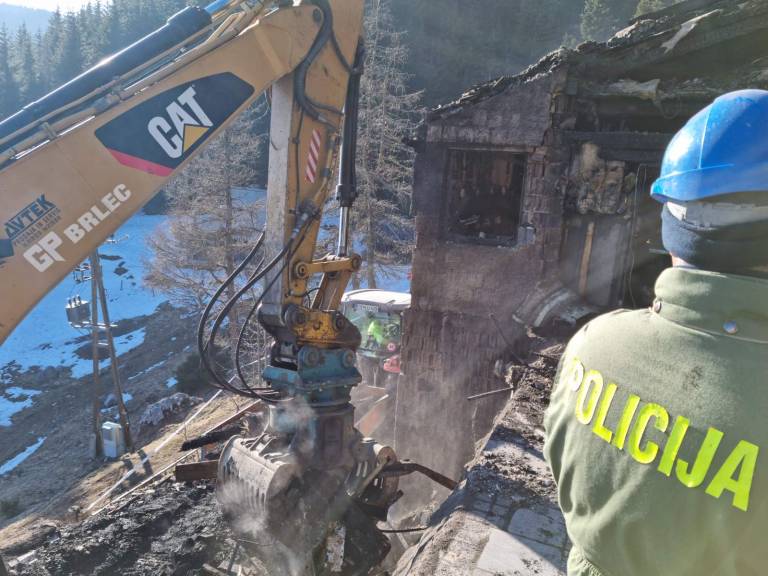 Celjski kriminalisti so včeraj v sodelovanju s strokovnjaki Nacionalnega forenzičnega laboratorija opravili ogled pogorišča Mozirske koče, ki jo je v večernih urah, 24. februarja, uničil ogenj.