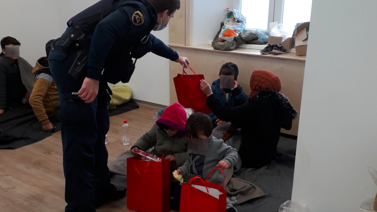 Včeraj je eden od policistov na Policijski postaji Ilirska Bistrica sam poskušal razveseliti otroke družine migrantov, eden od otrok je star ravno toliko kot njegov sin.
