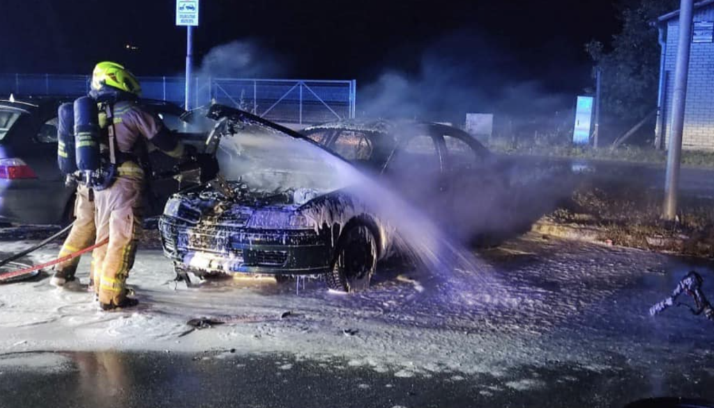 Okrog 1. ure zjutraj so bili policisti Policijske uprave Maribor obveščeni o tem, da ob poslovnem objektu na območju Teznega gori več vozil.