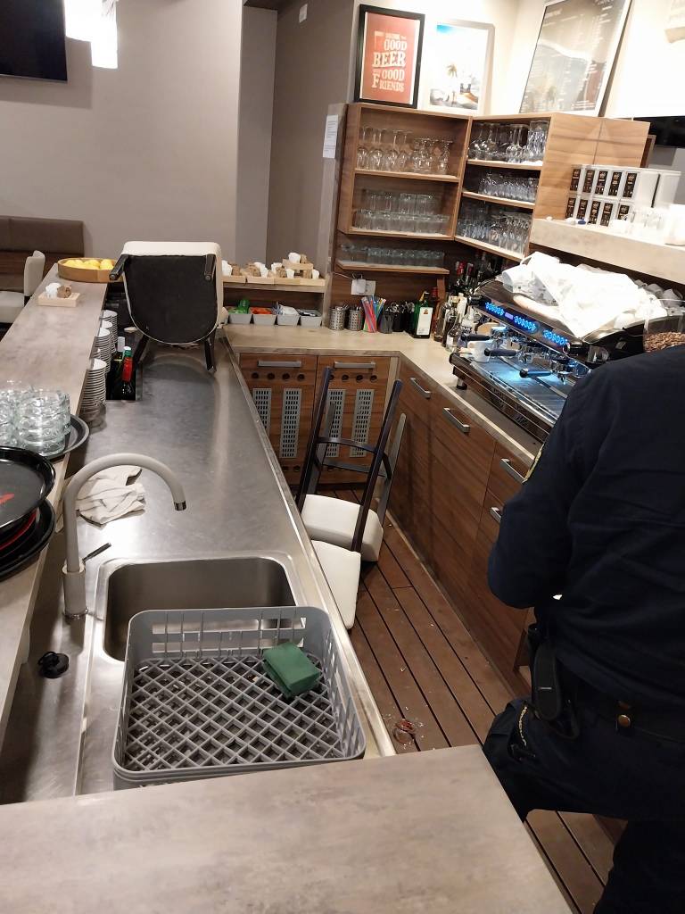 Nepridiprava sta, kot je razvidno iz fotografij, razdejala okolico točilnega pulta, razmetala barske stole in razbila nekaj stekla.