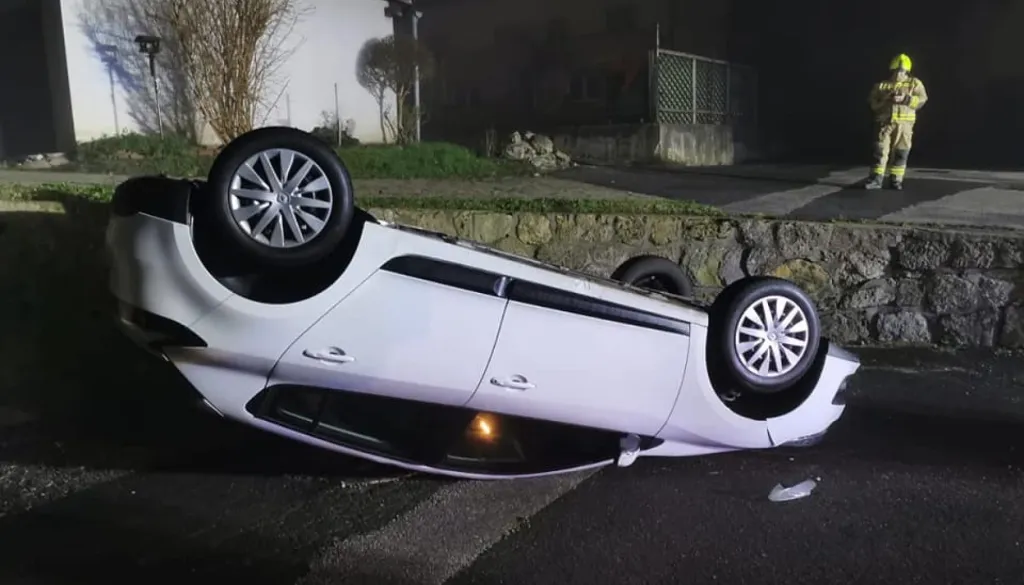 Vozilo je po vožnji s ceste pristalo na travniku in se prevrnilo – voznica je bila pod vplivom alkohola.