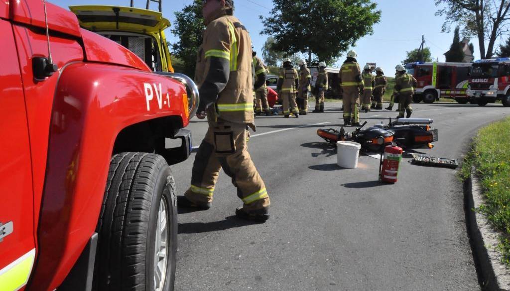 V tistem trenutku je pravilno iz nasprotne smeri pripeljal voznik motornega kolesa. Voznica avtomobila je trčila v motorno kolo, katero je skupaj z voznikom in sopotnico padlo na travnato površino.