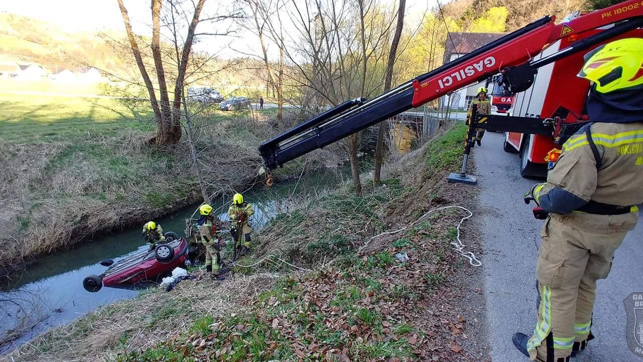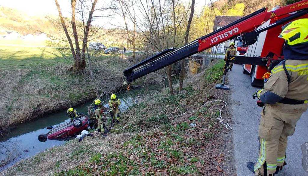Voznik zapeljal v potok, rešili so ga mimoidoči