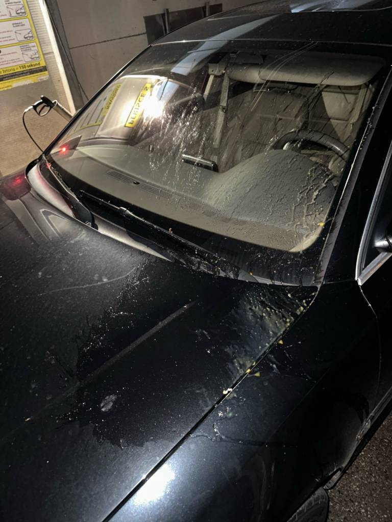 Kot nam je zaupal, se je peljal na relaciji uvoza mariborske obvoznice iz smeri Pobrežja proti Ptujski cesti, ko so z bližnjega nadhoda za pešce na njegovo vozilo priletela jajca.