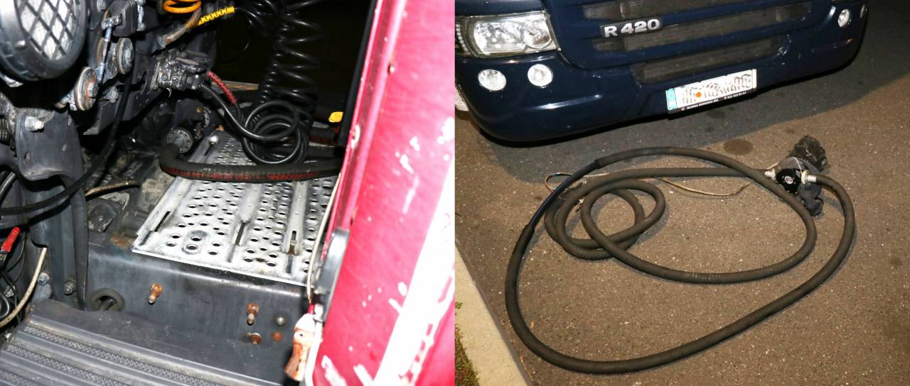 Policisti so bili danes, malo po 1. uri, s strani mobilnega oddelka Finančne uprave Republike Slovenije obveščeni, da imajo v Grabonošu v postopku tovorno vozilo, ki ima nameščene prirejene naprave za prečrpavanje goriva iz drugih tovornih vozil.