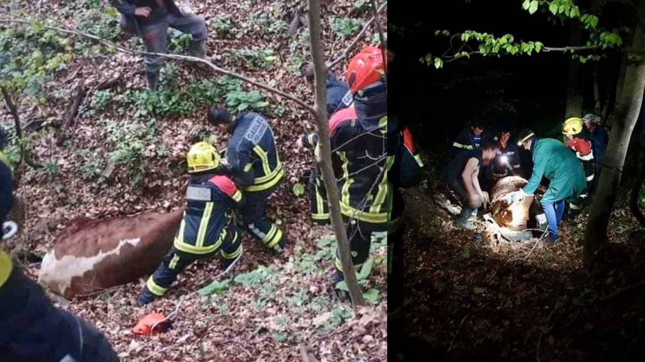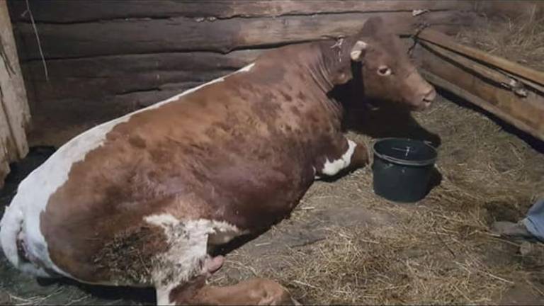 Na velikonočno soboto zvečer je v Velikem Okiču 53 v občini Videm krava ušla iz hleva, padla v prepad in tam obležala.