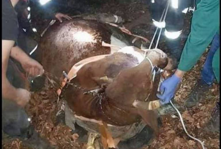 Naslednji dan, torej na veliko noč, pa so žival z velikimi napori le uspeli rešiti.