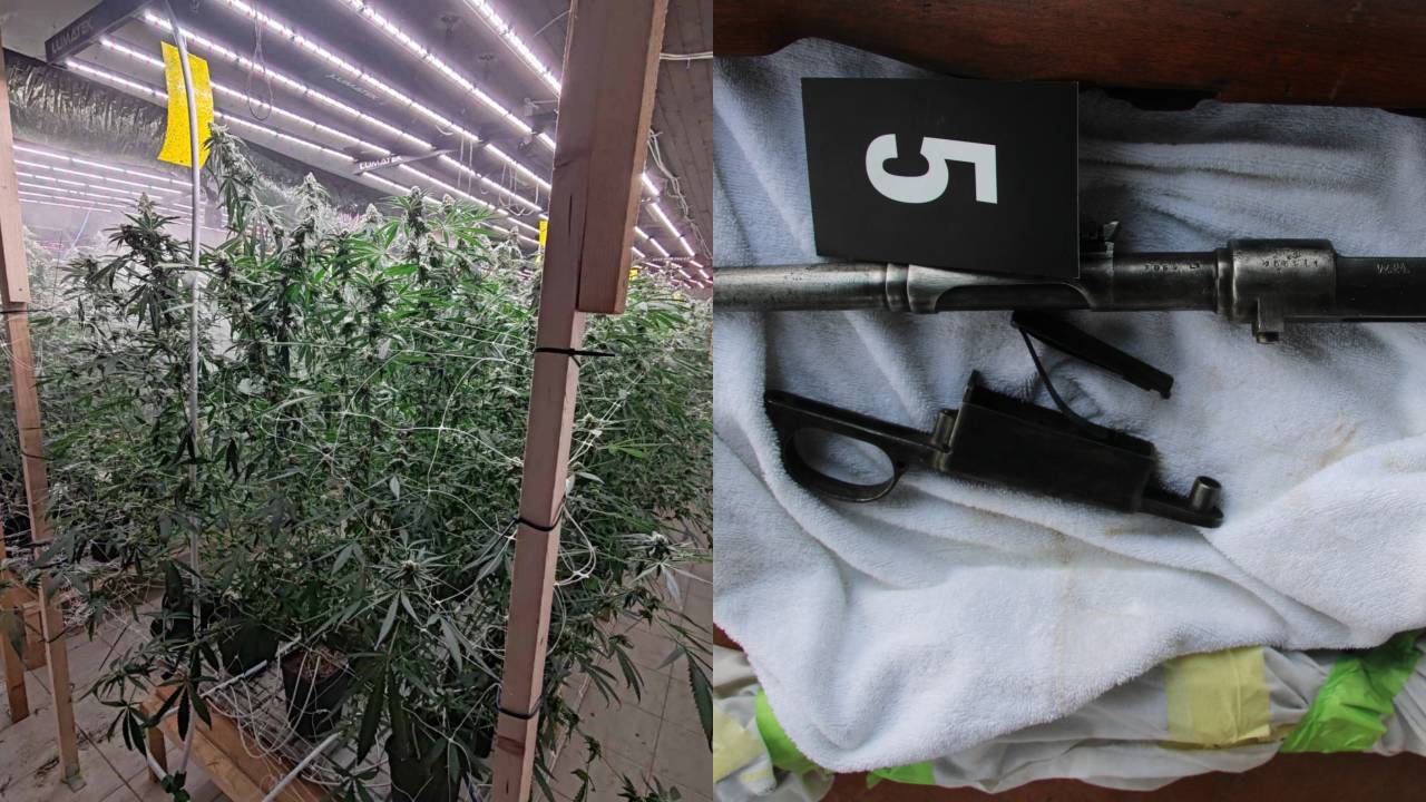 Zasegli so približno 500 gramov posušenih rastlinskih delcev, 198 stebel sadik konoplje ter dve lovski puški, za kateri osumljeni ni imel ustreznega dovoljenja.