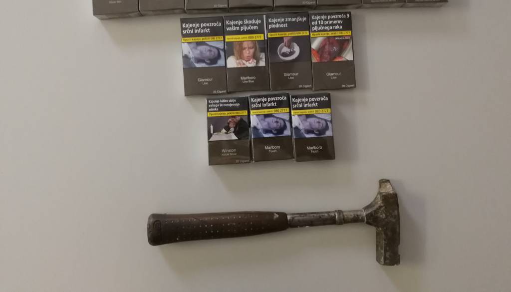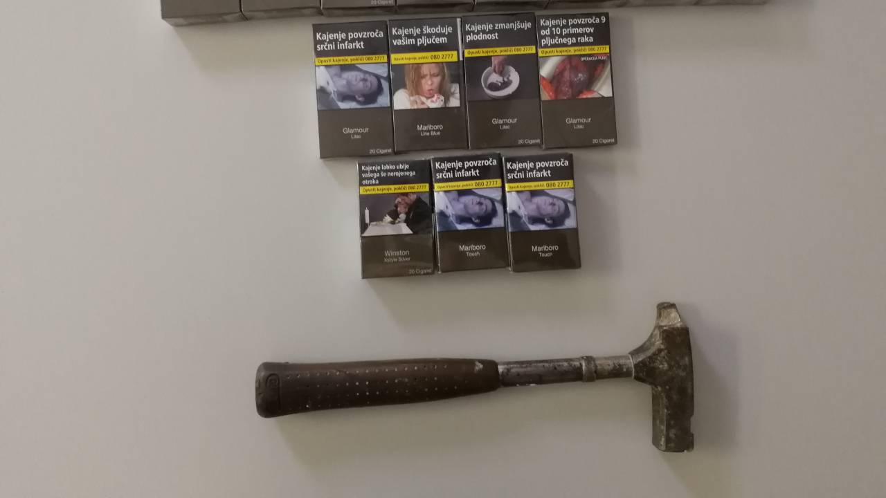 Z zbiranjem obvestil in dokazov so policisti osumljenca izsledili in mu odvzeli prostost. Pridobili so sodno odredbo in pri osumljencu opravili hišno preiskavo. Med njo so našli in mu zasegli več vrst in znamk cigaret, večino cigaret pa je osumljenec že uspel prodati na ulici. Prav tako so pri hišni preiskavi zasegli kladivo, s katerim je razbil steklo.
