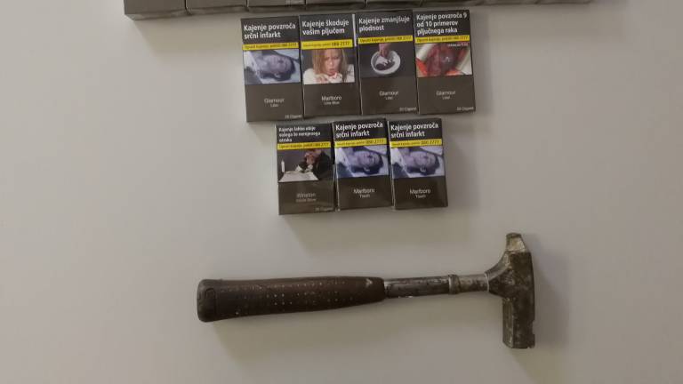 V drugo trgovino je vlomil tako, da je s kladivom, ki je na fotografiji, razbil steklo vhodnih vrat, vstopil v predprostor, nato ponovno s silo telesa razprl pomična vrata, jih ob tem poškodoval in tako vstopil v trgovino. Tam je ponovno vzel in odtujil več različnih vrst in znamk cigaret.