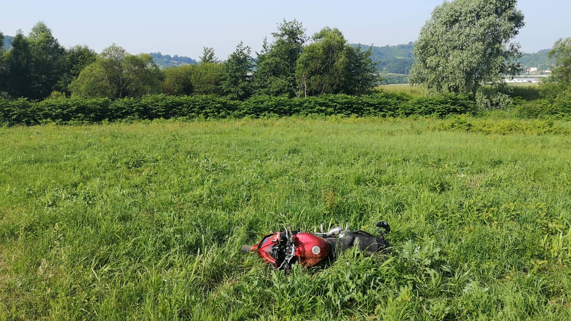 Prišlo je do hujše prometne nesreče, v kateri se je močno poškodoval mladoletnik. Ta je z 'mini cross' motorjem trčil v drevesni panj, nato ga je odbilo še v bližnje drevo.