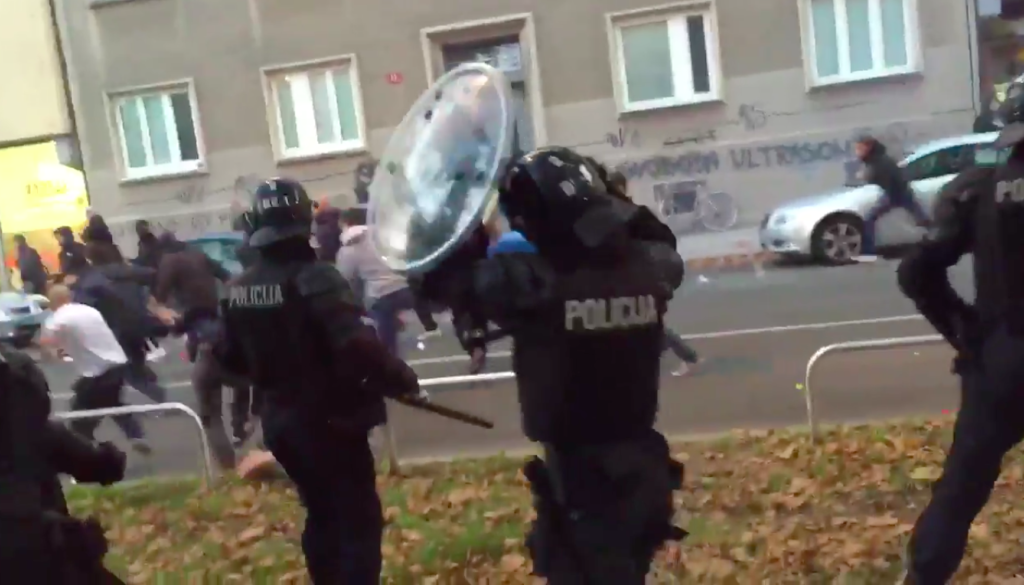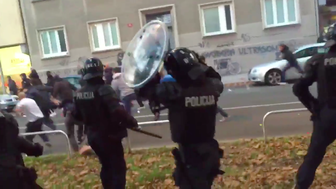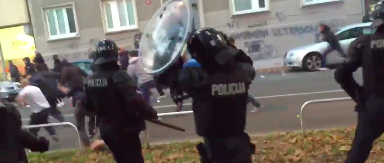 Na Poštni ulici v Mariboru je po tekmi prišlo do množičnega pretepa med navijači.
