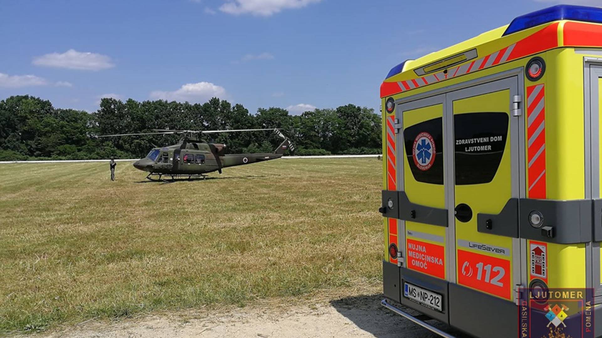 Poškodovanca odpeljali z vojaškim helikopterjem.