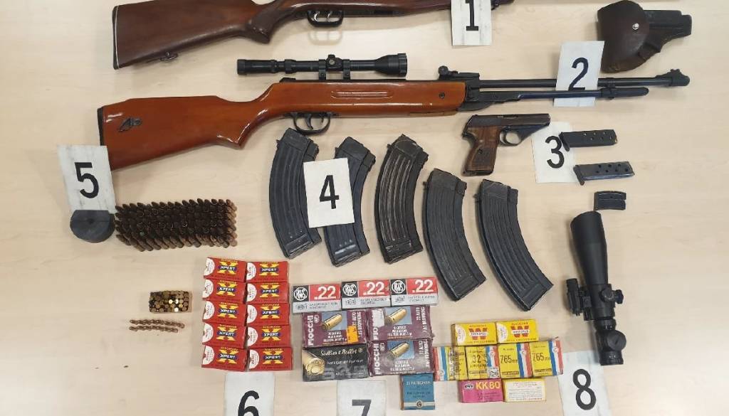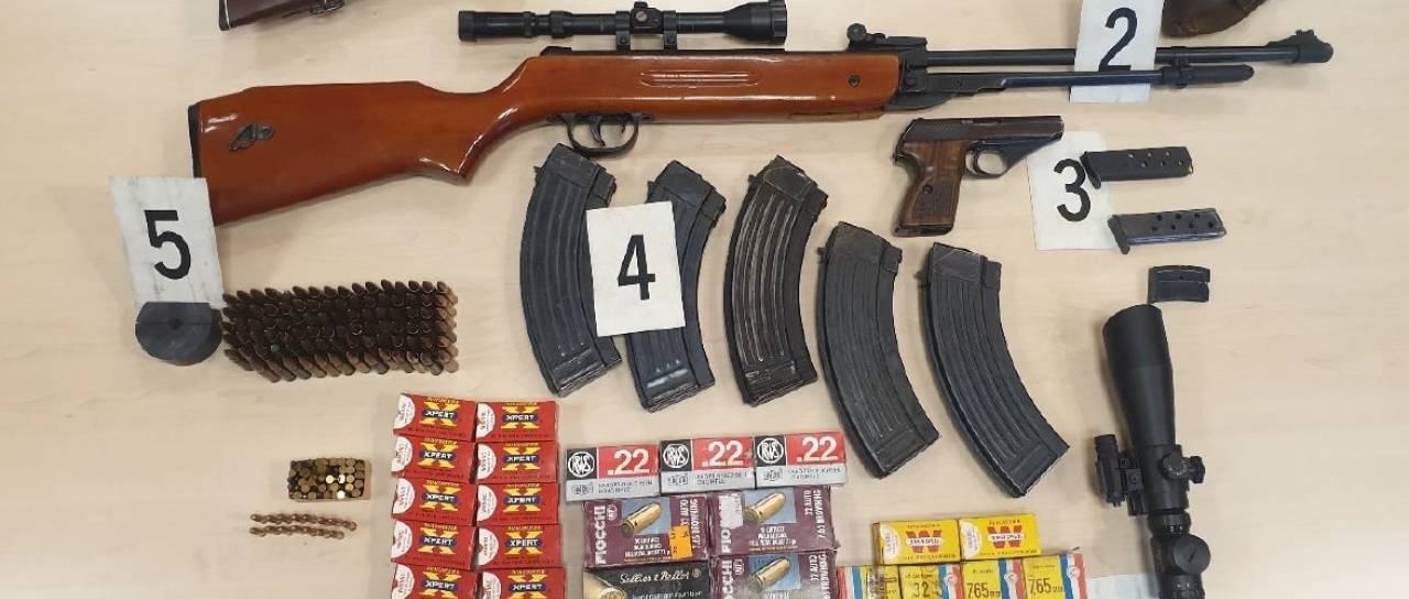 Pri preiskavi stanovanjske hiše je bilo zaseženih več kosov orožja in streliva, za katere osumljeni ni posedoval orožne listine, in sicer:
