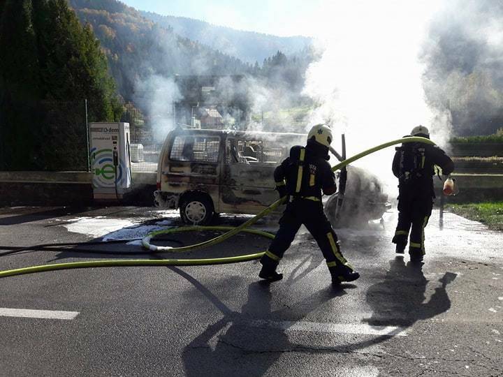 Dvanajst gasilcev Prostovoljnega gasilskega društva Radlje je uspelo s tremi gasilskimi vozili pogasiti požar, ki je uničil vozilo.