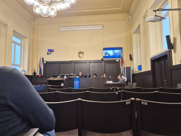 Obtožena obravnavo spremlja prek videokonference, skupaj s svojim zagovornikom.