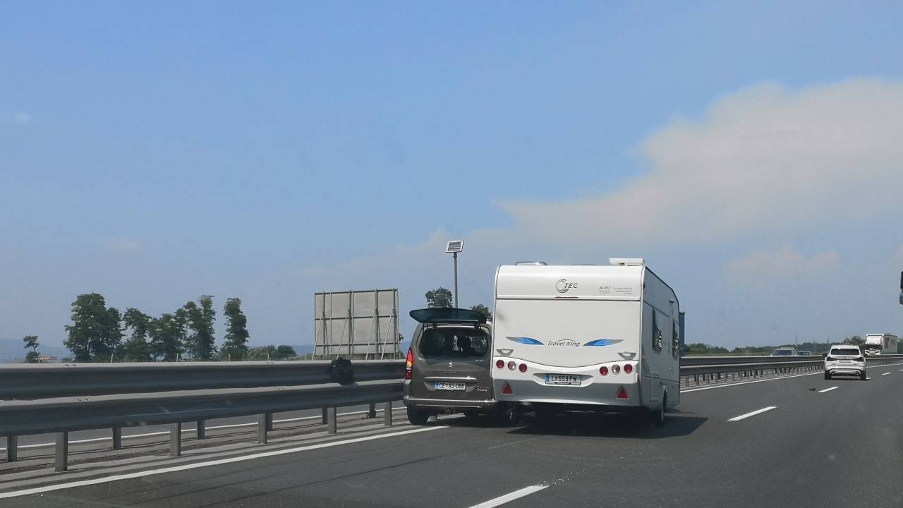 Na štajerski avtocesti je prišlo do trčenja med avtomobilom in vozilom s počitniško prikolico.