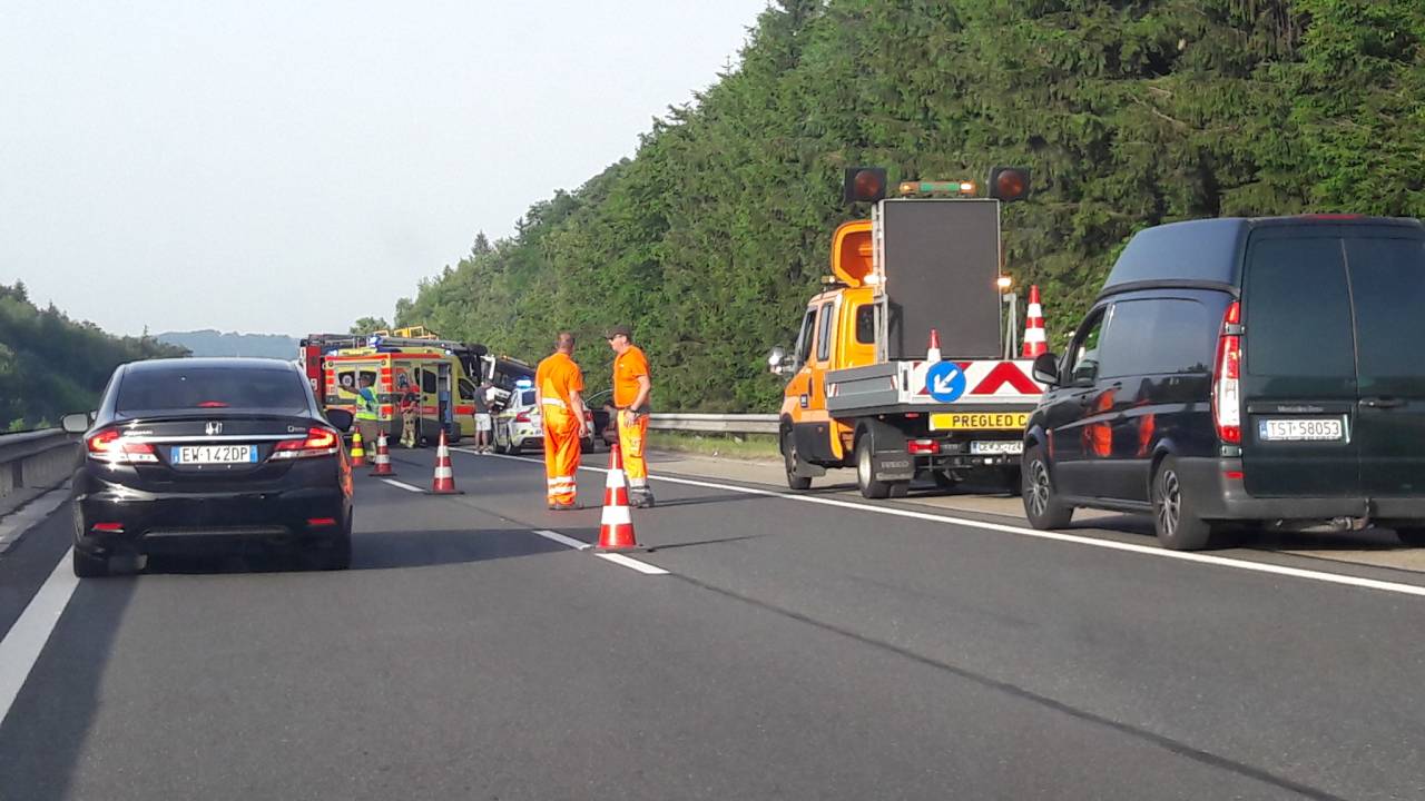Na štajerski avtocesti v smeri Maribora, med počivališčem Tepanje in priključkom Slovenska Bistrica - jug proti Mariboru, je ob nekaj pred 18. uro prišlo do trčenja med tovornim in osebnim vozilom.