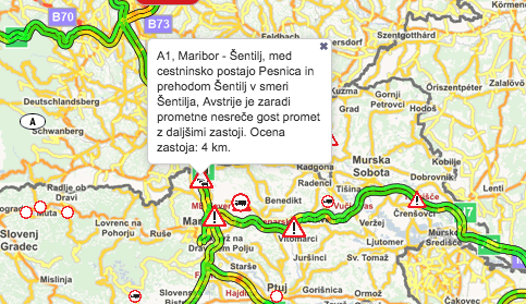 Na avtocesti Maribor – Šentilj je med cestninsko postajo Pesnica in prehodom Šentilj v smeri Šentilja prišlo do prometne nesreče, zaradi katere nastajo daljši zastoji, ki naj bi po ocenah Prometno-informacijskega centra bil dolg že štiri kilometre.