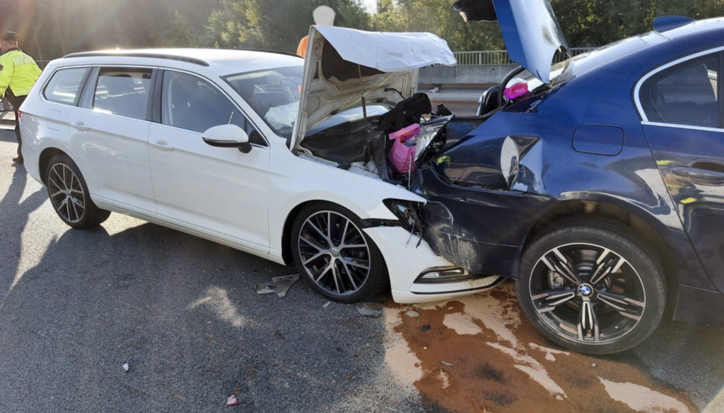 Na Ptujski cesti v Mariboru je prišlo do večjega trčenja osebnih vozil. Reševalcem so sporočili, da je voznik enega vozila ukleščen.