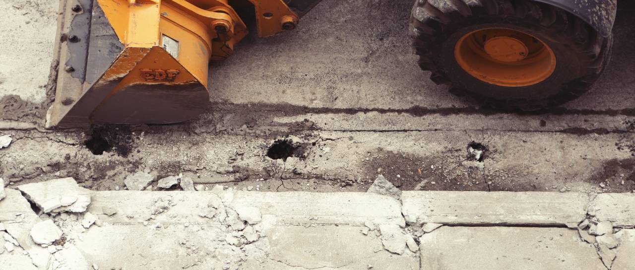 Nakladalna rampa je popustila, bager pa se je prevrnil na levi bok ...