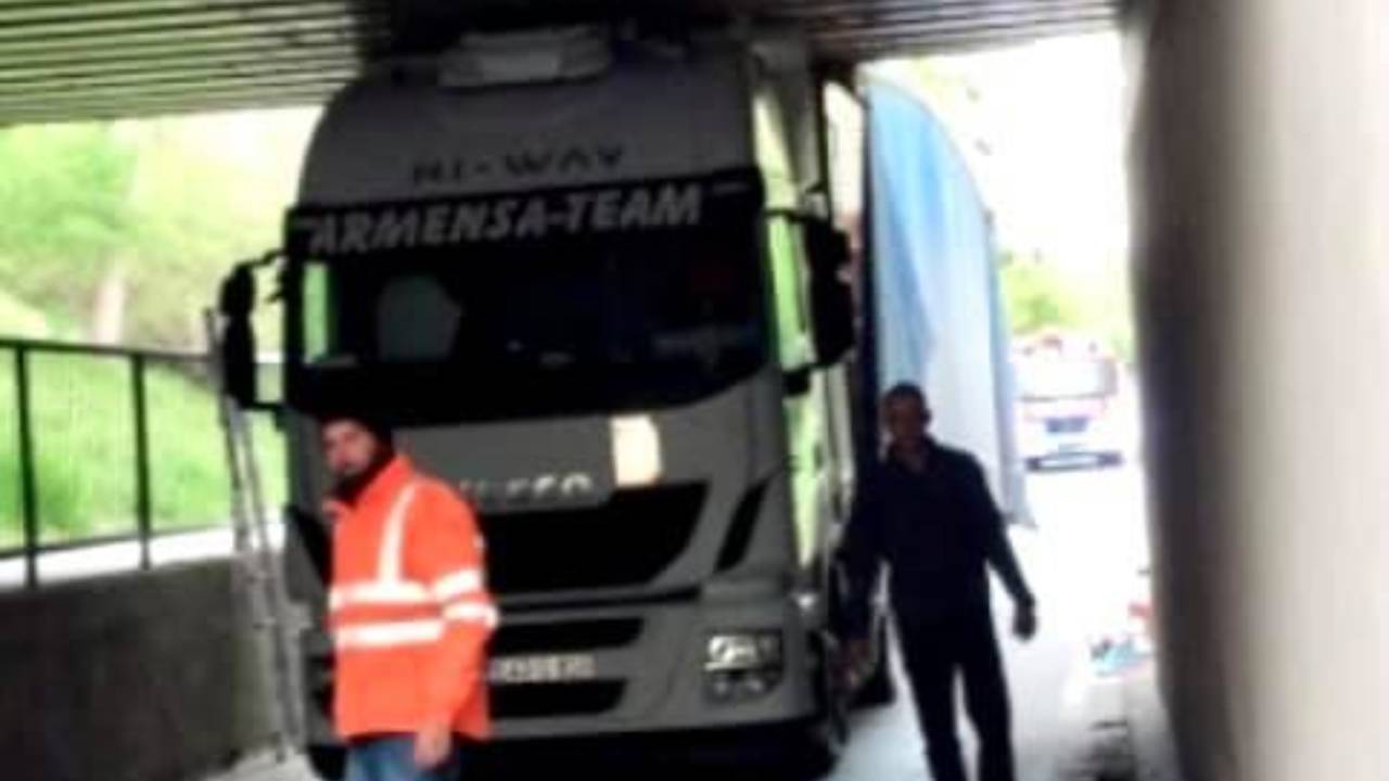 Nadvoz je bil prenizek za ta tovornjak, sledilo je neizbežno