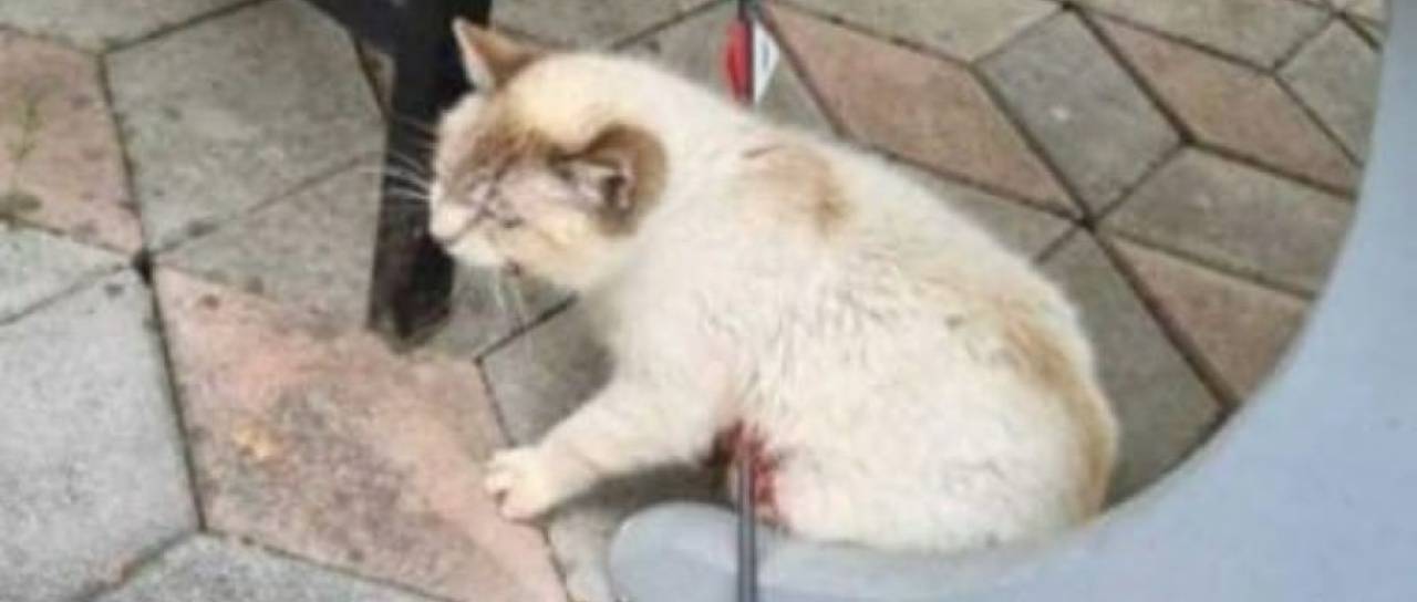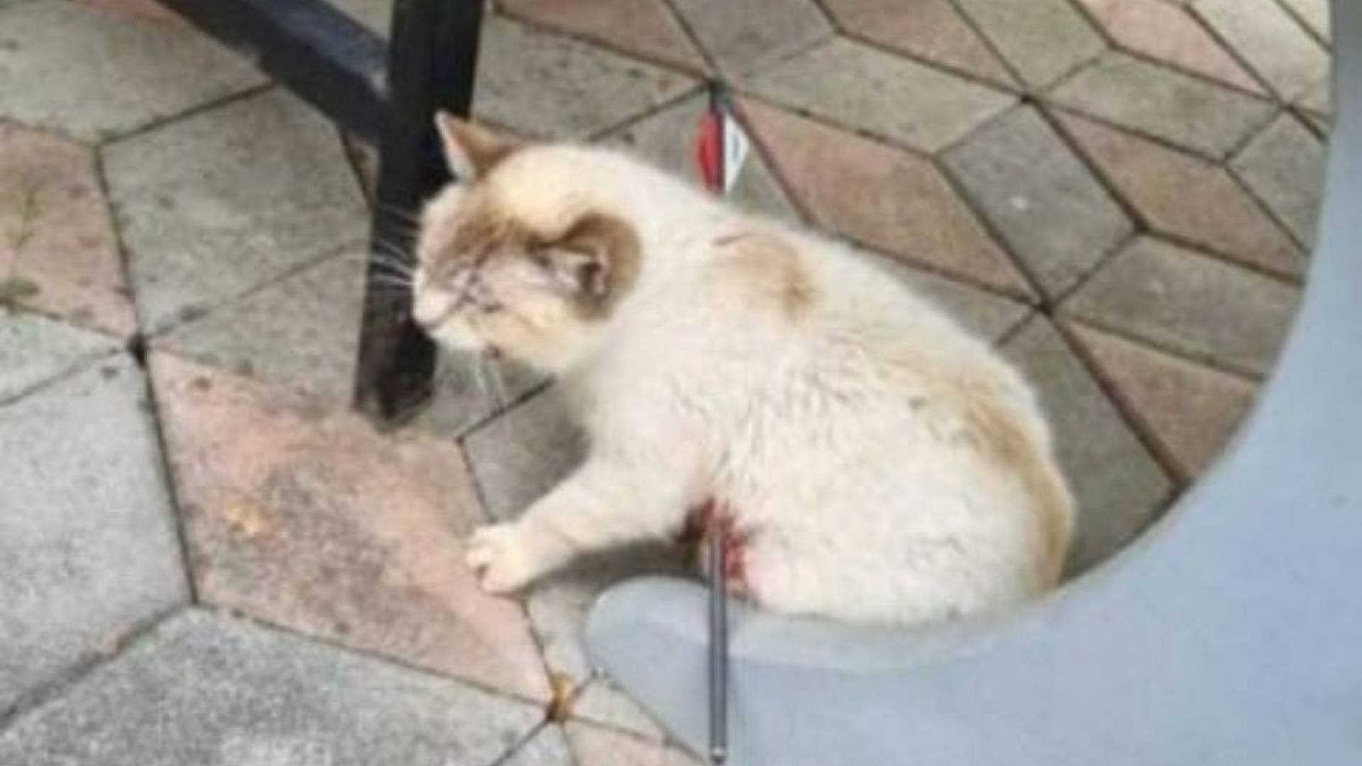 Eden od prostoživečih muc je bil s puščico iz samostrela prestreljen čez sredino telesa.