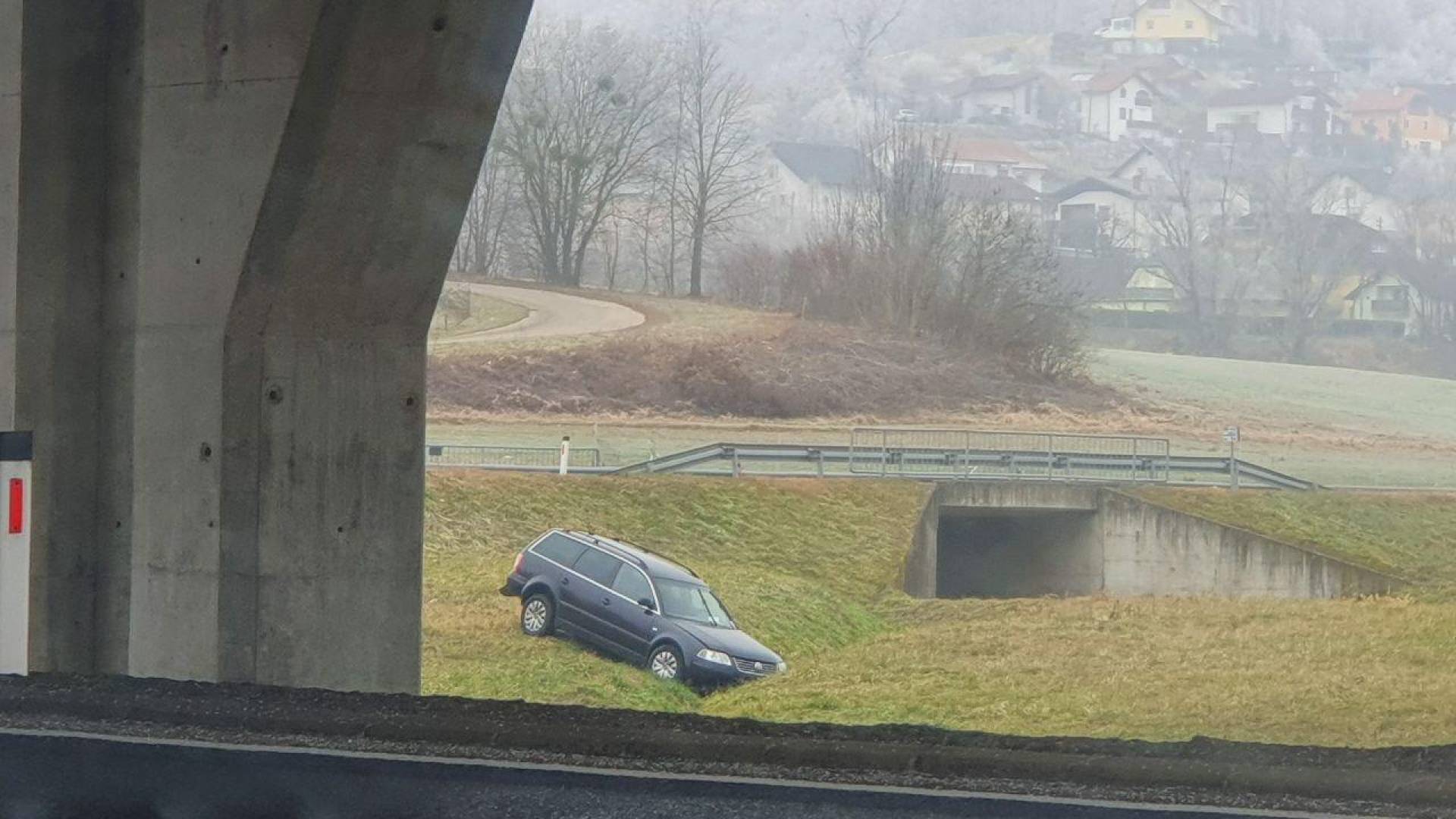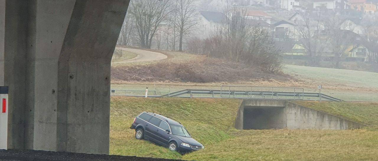 Avtomobil se pod tamkajšnjim nadvozom sicer nahaja že vsaj od včeraj zjutraj, ko so nastale spodnje fotografije.