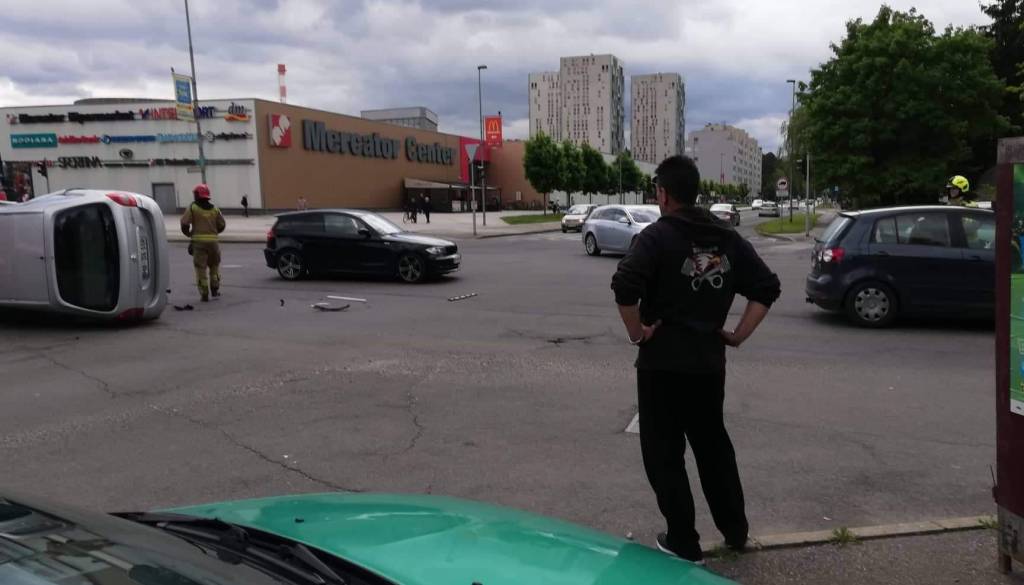 V križišču Ljubljanske ulice s Cesto proletarskih brigad sta ob 13.30 trčili dve vozili, eno je obrnilo na bok. V nesreči sta se poškodovali dve osebi, ki so ju prepeljali v UKC Maribor.