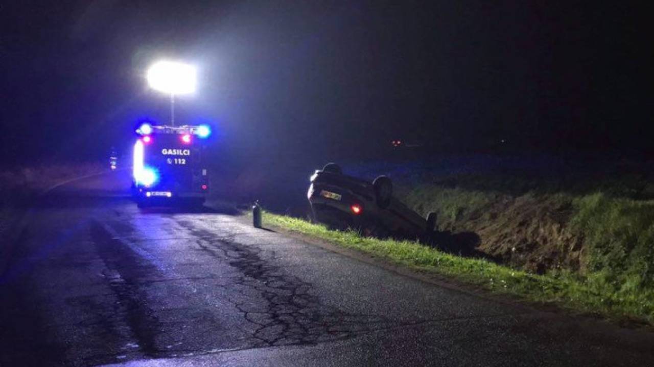 Na območju Lenarta je voznica zapeljala s ceste, avtomobil pa se je nato prevrnil, zaradi česar so ji morali pomagati tudi gasilci.