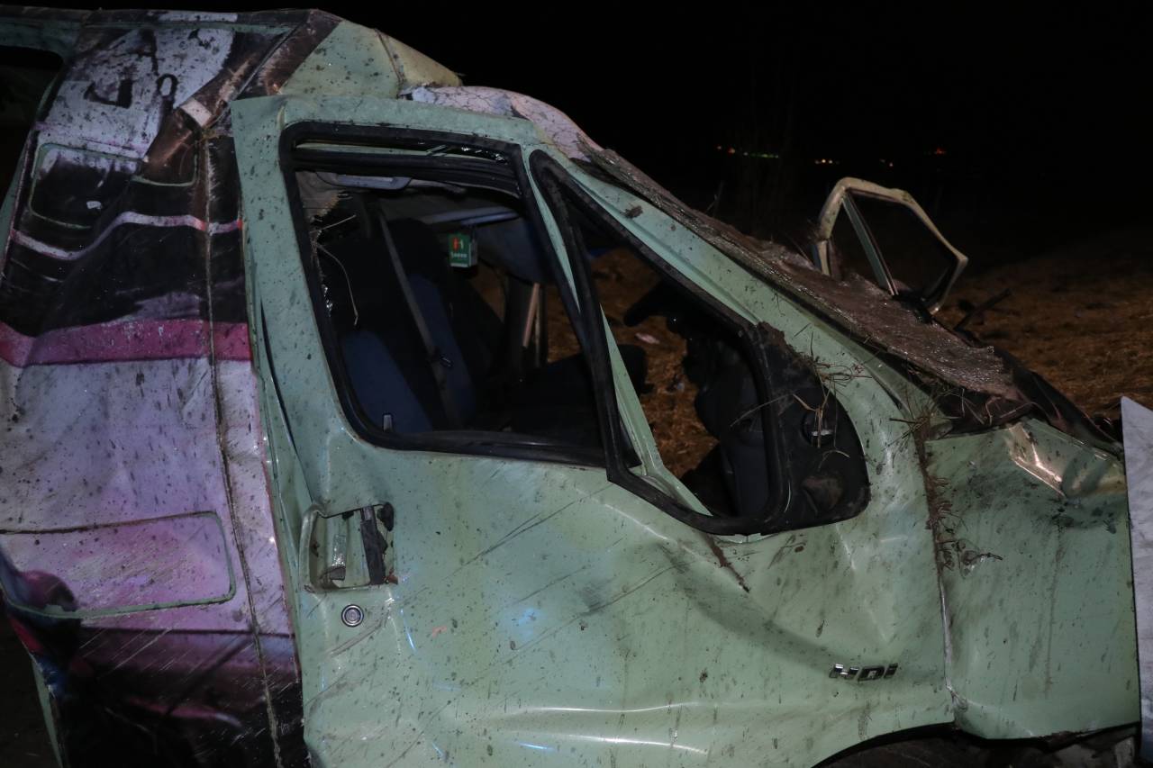 Prometno nesrečo je povzročil 24-letni voznik kombiniranega vozila, ki je v vozilu nezakonito prevažal 12 prebežnikov.