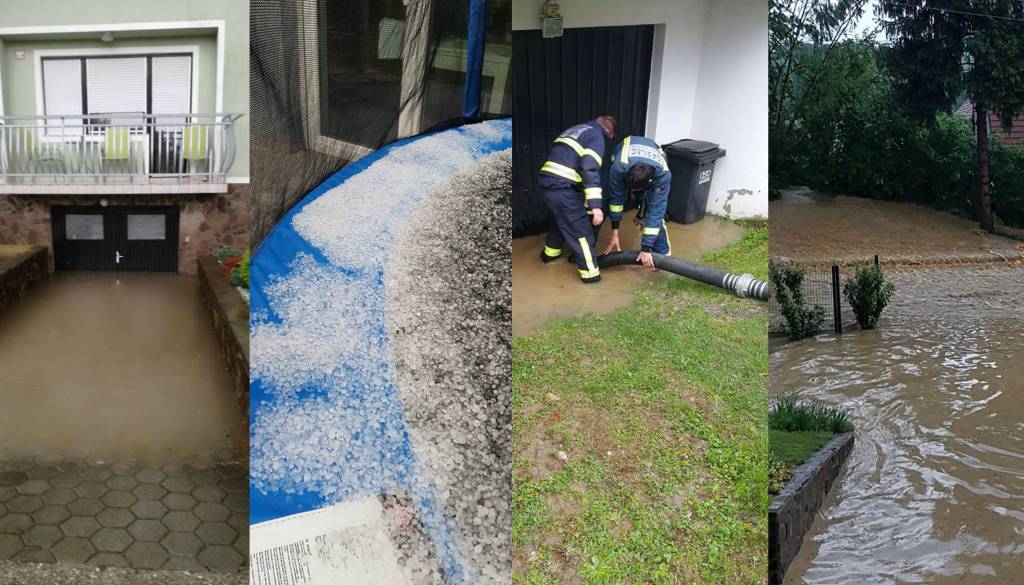 Močna neurja, ki so včeraj zajela Štajersko, so za seboj pustilo številne poplavljene kleti, meteorne vode so zalile ceste, padala je tudi manjša toča.
