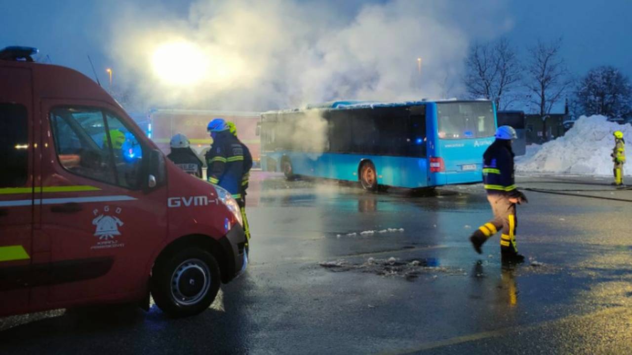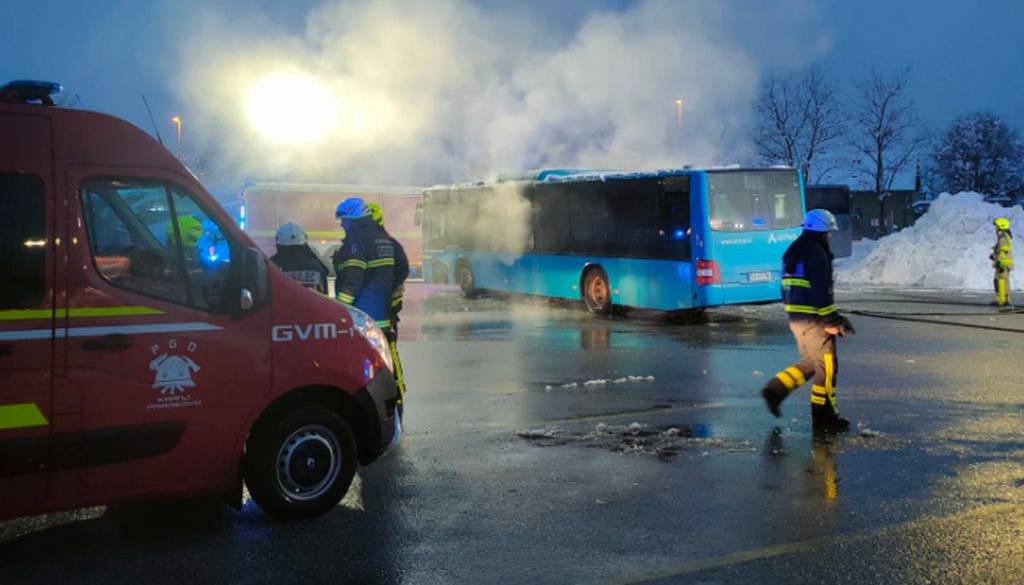 Kranjski policisti so posredovali na ulici Mirka Vadnova v Kranju, kjer je včeraj na parkirišču zagorel ugasnjen avtobus.