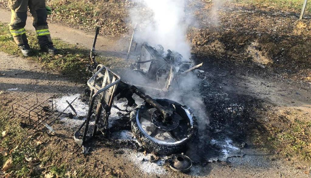 Kot poroča Uprava Republike Slovenije za zaščito in reševanje, je ob 11.34 v naselju Črešnjevci zagorelo kolo z motorjem.