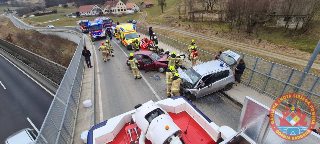Ob 14.51 sta v naselju Brengova pri nadvozu čez avtocesto trčili osebni vozili.