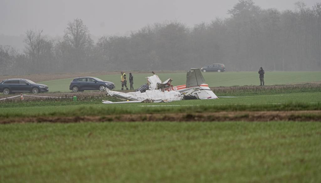 Na prizorišču nesreče danes zjutraj razbitin letala ni bilo več, na njivi ležijo le še manjši kosi letala.
