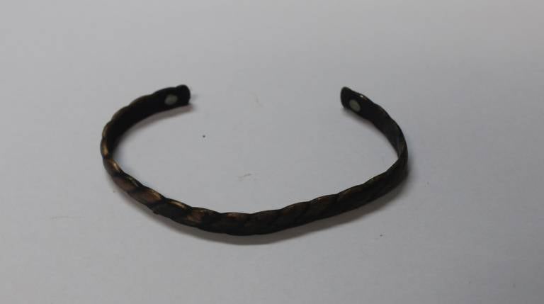 Na desni nogi v predelu gležnja je bila najdena bakrena zapestnica, obložena z zeleno patino.