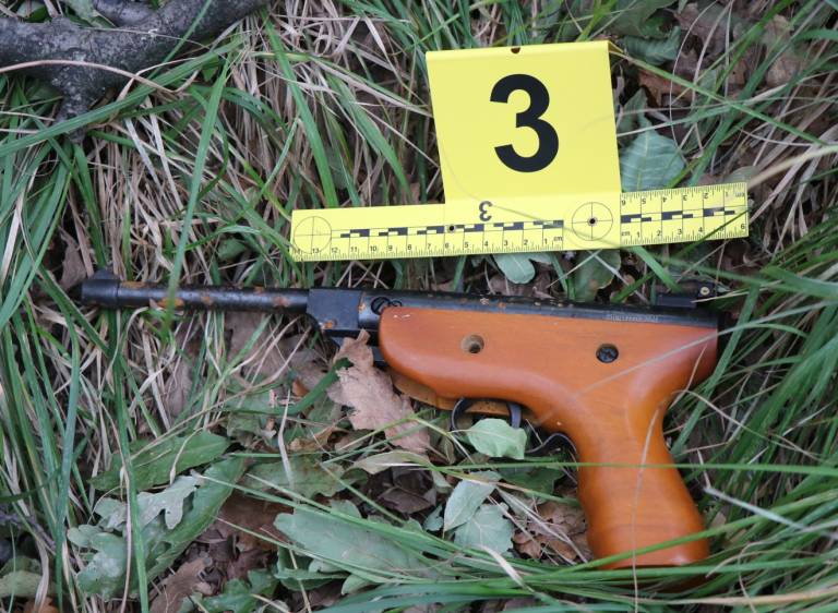 Gre za naslednje predmete: sekira znamke ID Tools, zračna pištola znamke Kandar S2 (brez nabojev), črn nahrbtnik, v katerem je bila siva dolga majica, brisača, časopis Delo s 1. avgusta 2020 in sobotna priloga Dela z 18. julija 2020, del črne nogavice znamke CAT in del potiskanega papirja z ročno napisanimi besedami.
