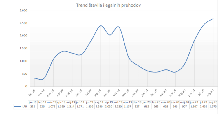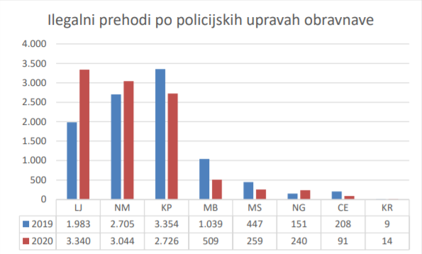 Policijske uprave Ljubljana, Novo mesto in Koper ostajajo najbolj obremenjene z nedovoljenimi prehodi državne meje, vsaka z več kot 3.000 obravnavanimi osebami v letošnjem letu. Kot pravijo v Policiji, je trend števila ilegalnih prehodov z večjo mobilnostjo ilegalnih migrantov začel strmo naraščati. Pričakovati je nadaljevanje trenda velikega števila ilegalnih prehodov, ki je že presegel obseg, dosežen v lanskem letu.