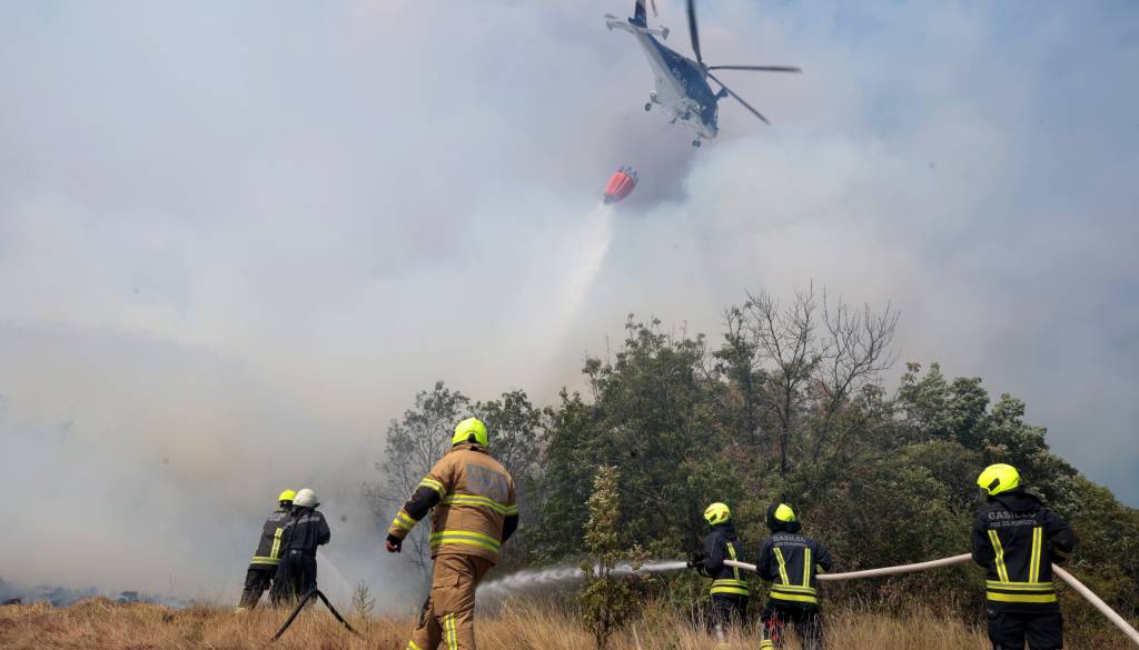 Požar na Krasu gasi šest helikopterjev in pilatus, na pomoč prihajajo tudi tri romunska letala in hrvaški kanader.