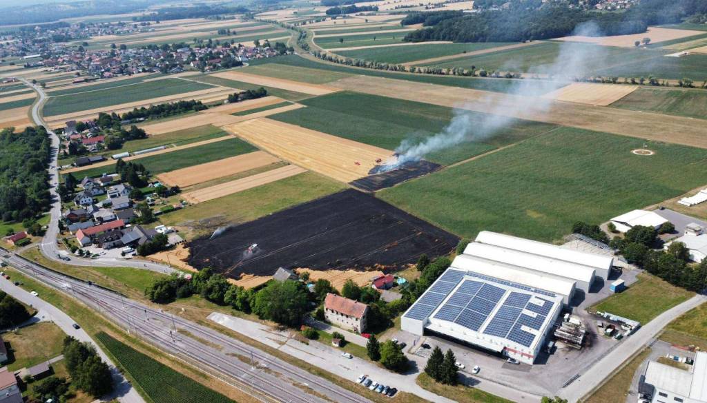 Požar na njivi ogrožal tri objekte, gasilci: »Hvala za vaš odziv v teh 'peklenskih' pogojih!