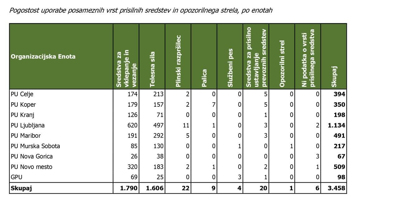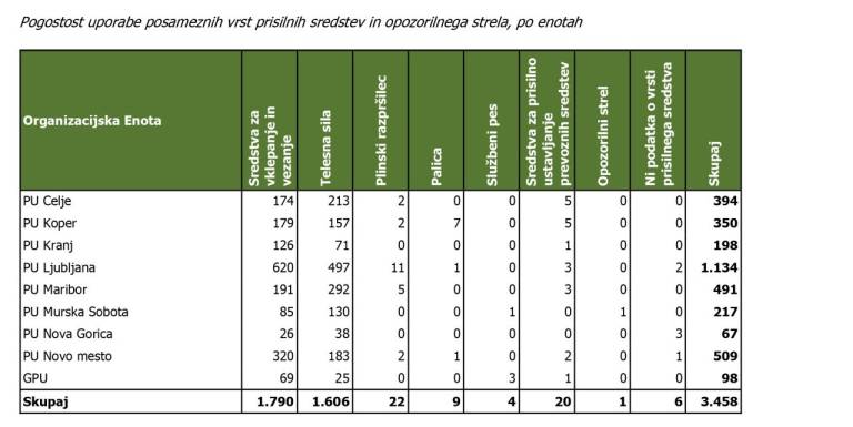 Po prisilnih sredstvih so možje postave pri svojem delu v naših krajih bili primorani poseči 491-krat, a se v nobenem primeru niso poslužili palice, službenih psov ali opozorilnih strelov.