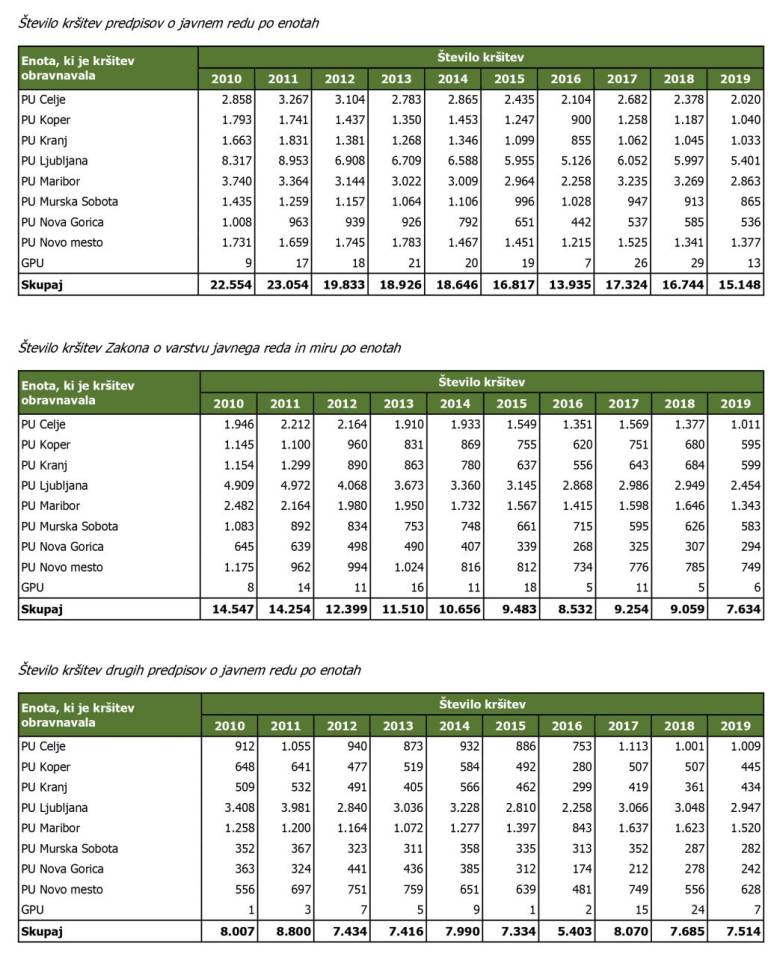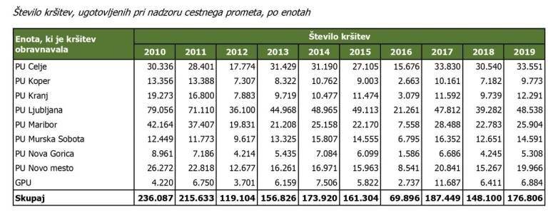 Je pa v zadnjih devetih letih opazen trend upadanja omenjenih kršitev na ravni celotne države.