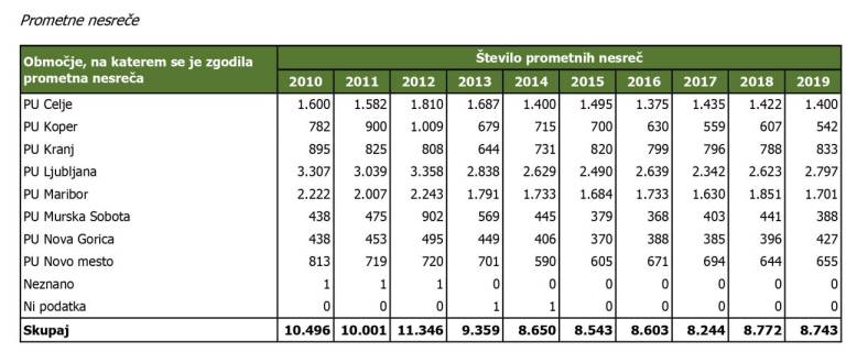 Manj prometnih nesreč in mrtvih na cestah