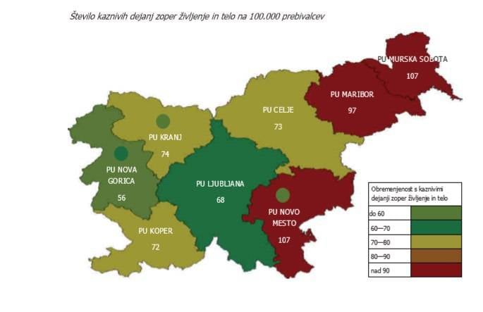 Lani, denimo, smo tovrstnih primerov našteli 97 na 100.000 prebivalcev, kar je le 10 manj kot v prvouvrščenih Policijske uprave Murska Sobota in Policijske uprave Novo mesto.