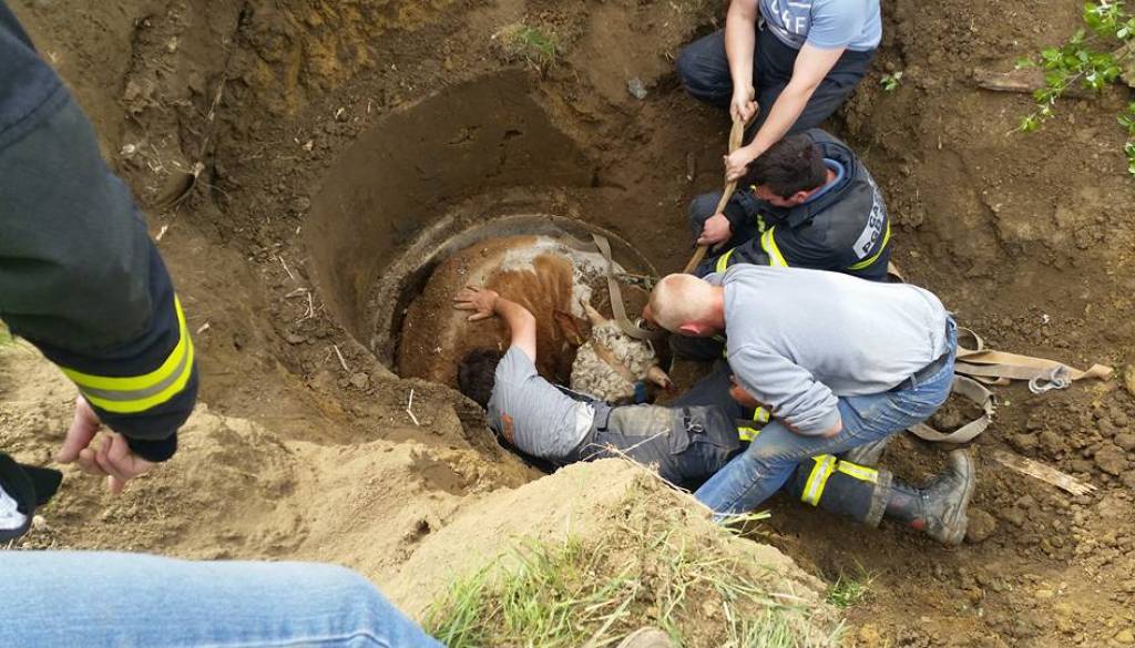 Ko smo že pisali, so včeraj gasilci PGD Šentilj in Paloma ob 9.13 dobili nenavaden poziv na pomoč. V zapuščen studenec, globok tri, širok pa le dober meter, je padel bik, težak kar 400 kilogramov.