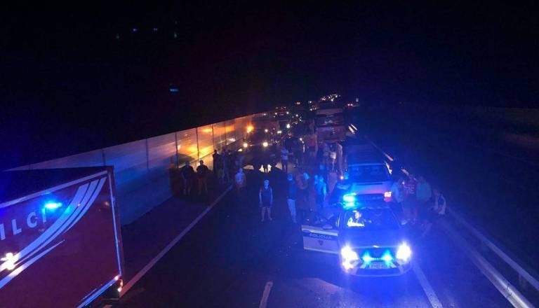 Dramatičen posnetek, kako gasilsko vozilo manevrira do prizorišča prometne nesreče ob nepravilno ustvarjenem reševalnem pasu na avtocesti.